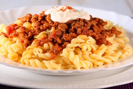Ζυμαρικά με κιμά και σκορδάτο γιαούρτι