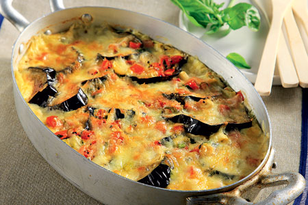 «Σαγανάκι» φούρνου με μελιτζάνες και μετσοβόνε