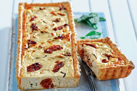 Τάρτα γιαουρτιού με λιαστή ντομάτα και δυόσμο