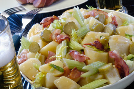 Πατατοσαλάτα με λουκάνικα και μουστάρδα