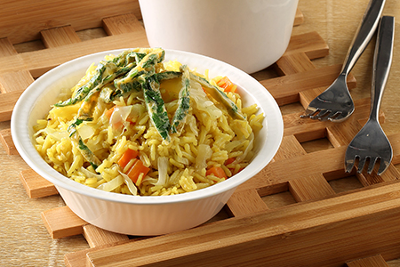 Πιλάφι με μπασμάτι, λαχανικά και ομελέτα