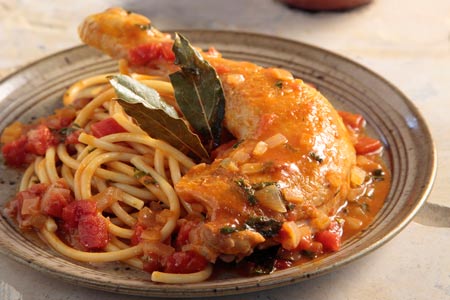 Κοτόπουλο κοκκινιστό με χοντρά μακαρόνια