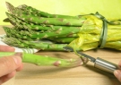 Κόβουμε και πετάμε 2 εκ. από τη βάση των σπαραγγιών. Στη συνέχεια, «ξεφλουδίζουμε» τα 4-5 εκ. της βάσης του στέλεχους που απομένει με το ειδικό εργαλείο (peeler) που χρησιμοποιούμε για το ξεφλούδισμα των καρότων ή των πατατών, για να απομακρύνουμε...