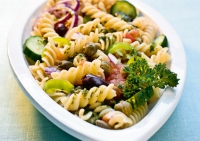 Με μόλις 1,5 € απολαμβάνουμε μια δροσερή μακαρονοσαλάτα με καλοκαιρινά λαχανικά.
