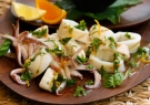 Με ψιλοκομμένα φύλλα μυρωδικών και ξύσμα από πορτοκάλι και λεμόνι, το ψητό καλαμάρι γίνεται έδεσμα περιωπής.