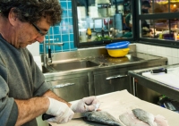 Φιλετάρισμα ψαριών και επιτόπου ψήσιμο.