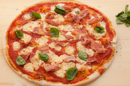 Πίτσα με κασέρι, προσούτο και βασιλικό
